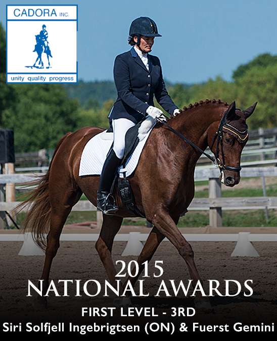 CADORA (Canadian Dressage Owners' and Rider's Association) congratulates all recipients of the 2015 National Awards program. Over $2500 was distributed amongst the top three recipients in each level.